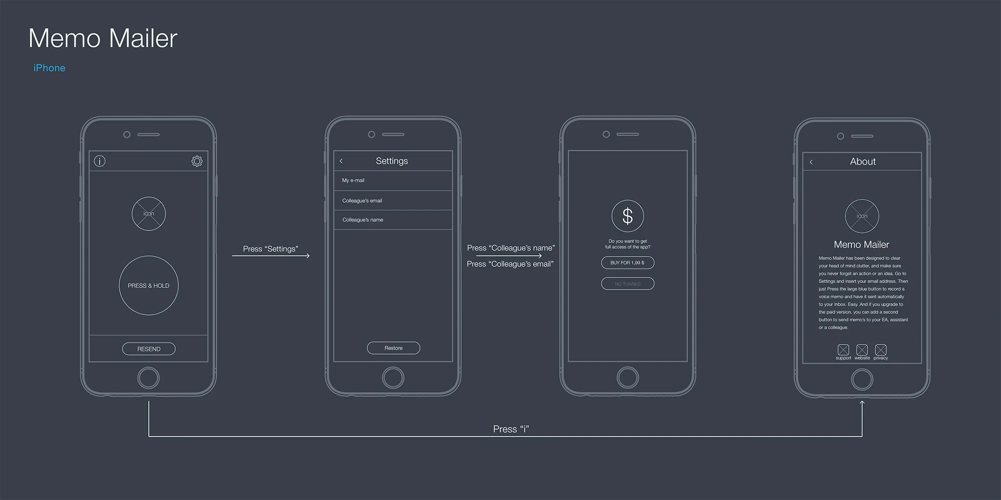"There was an app “Distractacorder” on iOS 6. The idea is to make audio records of all your thoughts and send it directly to your e-mail. Unfortunately, the app didn’t receive the feather iOS version support, and it becomes not available soon. The app was very useful for those who wants to keep all thoughts in one place and don’t want to lose any. As there were no analogs, the best solution was to launch an own app with the same functionality and modern design."